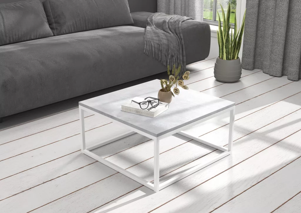 BELTEN 65x65 kávéasztal, Fehér, Beton