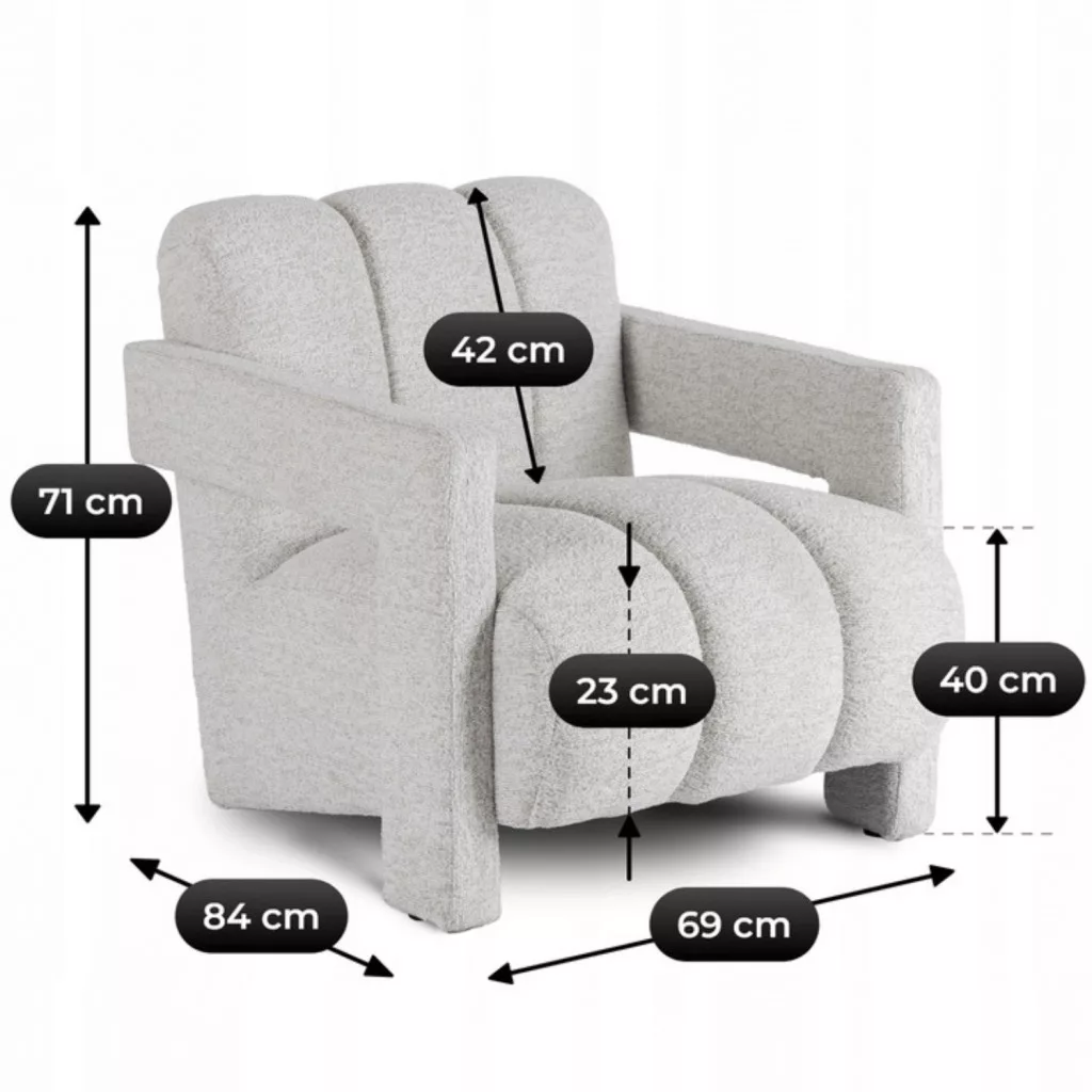 BENDER Lounge Fotel szürke színben. Fedezzen fel egy fotelt, amely a modern dizájnt ötvözi a kényelemmel. A Bender modell kiváló választás mind otthoni belső terekbe, mind kereskedelmi helyiségekbe. Ideális nappalikba, hálószobákba, öltözőkbe, valamint várótermekbe, szállodákba, szépségszalonokba és kávézókba. Miért válassza? Kiváló kényelem: A széles, puha ülőfelület garantálja a kényelmet hosszú ülések során is. Tökéletes hely reggeli kávézáshoz, könyv olvasásához vagy esti kikapcsolódáshoz egy kedvenc filmmel. Egyedi dizájn: A jellegzetes függőleges varrás divatos megjelenést kölcsönöz a fotelnek. A visszafogott, világos szürke szövet tökéletesen illeszkedik a modern stílusú enteriőrökhöz. Tartós kárpitozás: A kárpit puha tapintású, kopásálló és könnyen tisztítható. A sűrű szövés véd a bolyhosodástól, így a fotel hosszú ideig megőrzi esztétikai megjelenését. Padlóvédelem: A fotel lábai védőpárnákkal vannak ellátva, amelyek megvédik a felületeket a karcolásoktól. A Bender egy sokoldalú bútordarab, amely tökéletesen illeszkedik a legkülönfélébb környezetekbe, a modern, minimalista terektől az elegáns, luxus nappalikig. Egyedi formája és aprólékos kidolgozása nemcsak pihenőhellyé, hanem dekoratív elemmé is teszi.