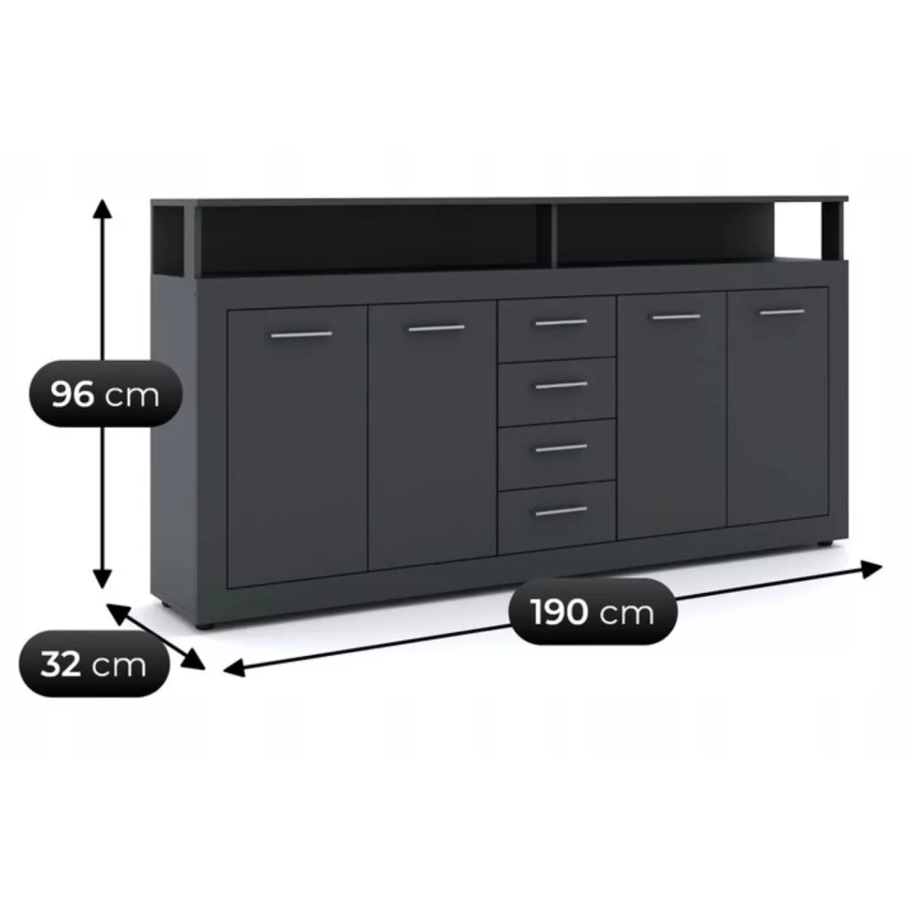 BLAGO Fiókos Komód 190 cm Antracit