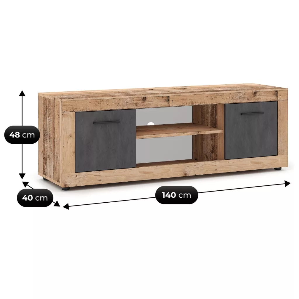 BLAGO TV szekrény 140 cm Nyers Tölgy/Grafit