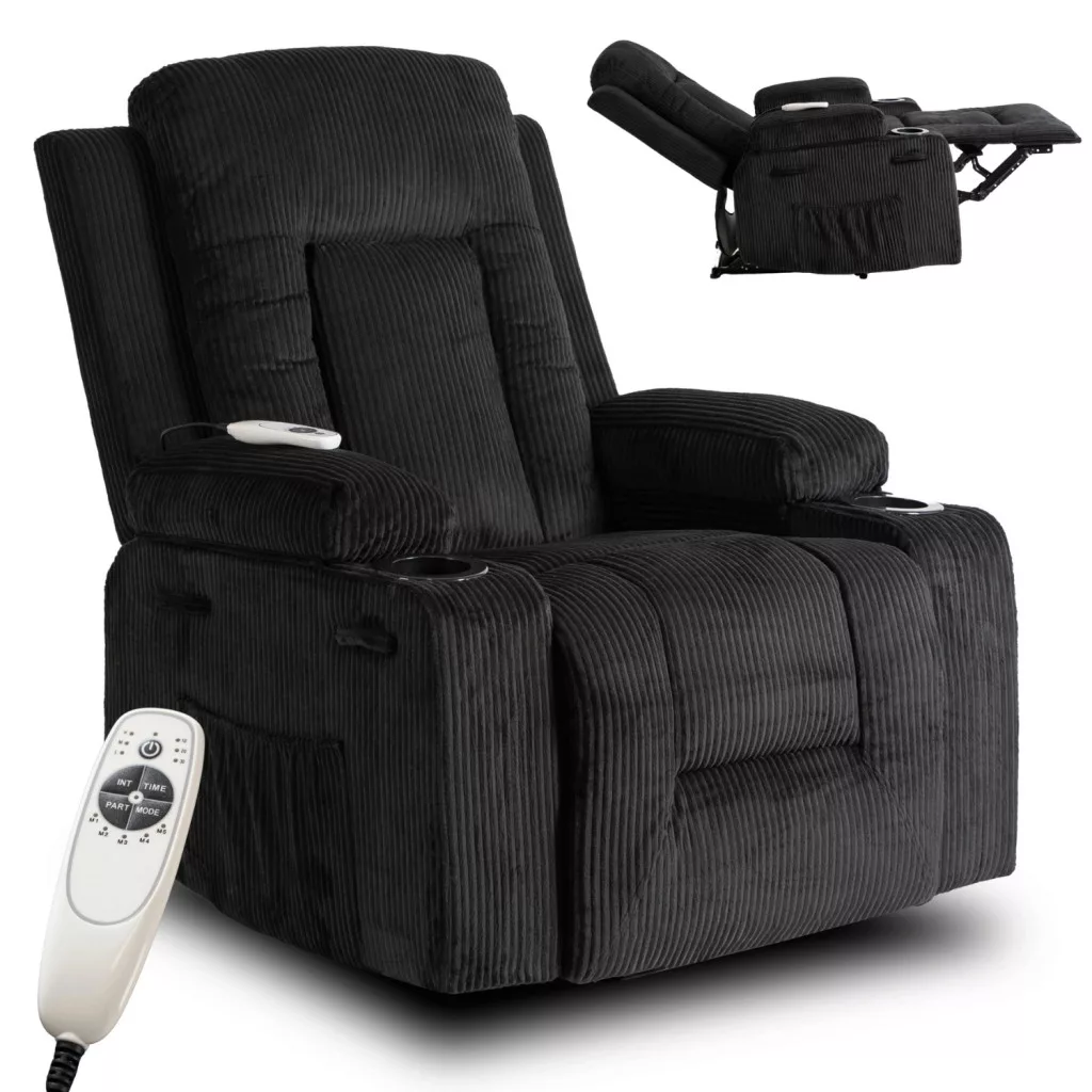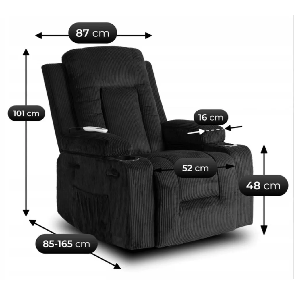 BOX fekete kordbársony dönthető masszázsfotel