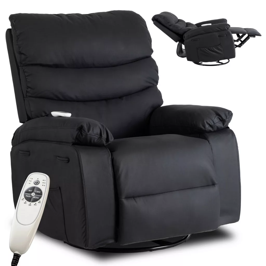 BRUCE Dönthető Masszázsfotel Ringató funkcióval, Fekete Ökobőr