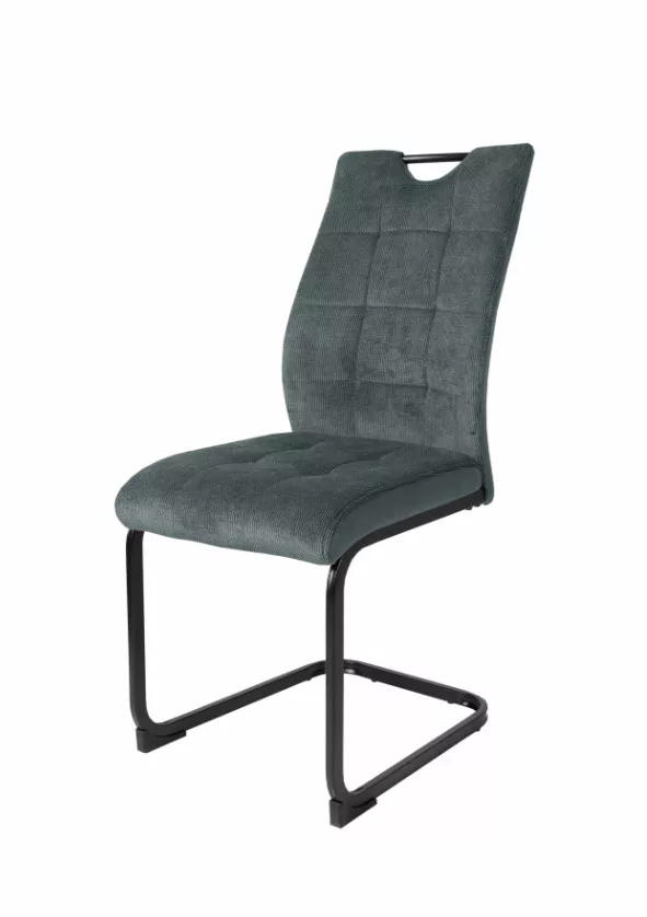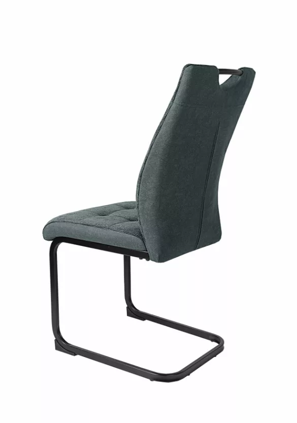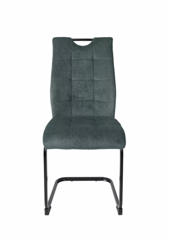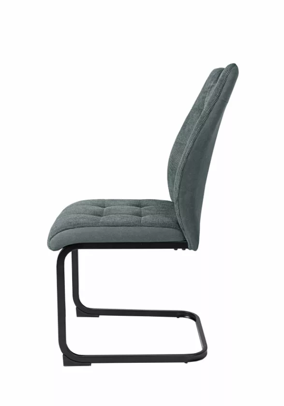 A Bruno szék szánkótalpas kivitelben készül a modern otthonok számára. Szövet ülőfelület és háttámla, hátoldalán velúr hatású kárpittal, fekete porfestett fém láb.