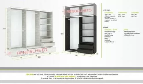 -Korpusz/Front: Sonoma tölgy, san remo, canterbury, bianco, nero, katthult, rusztik fehér, matt sötétszürke