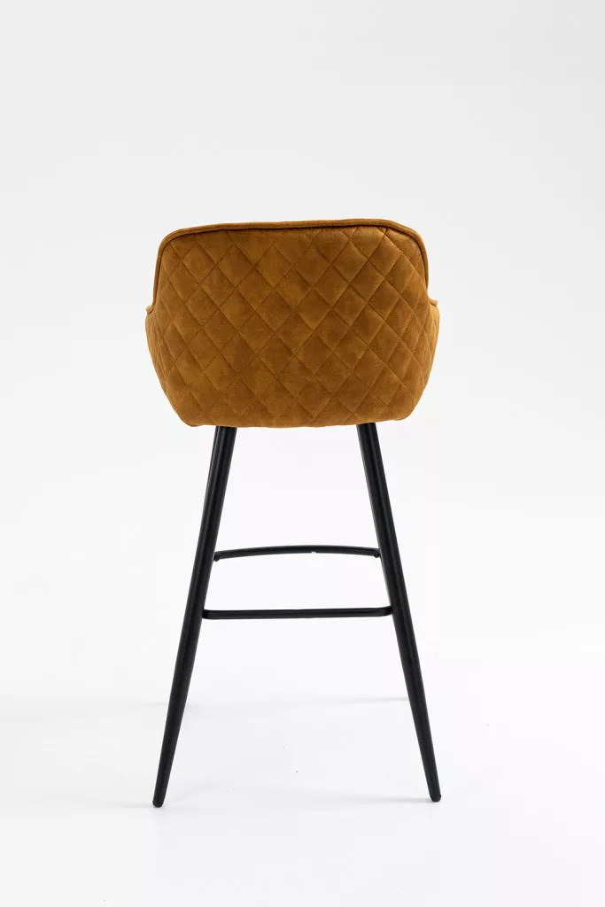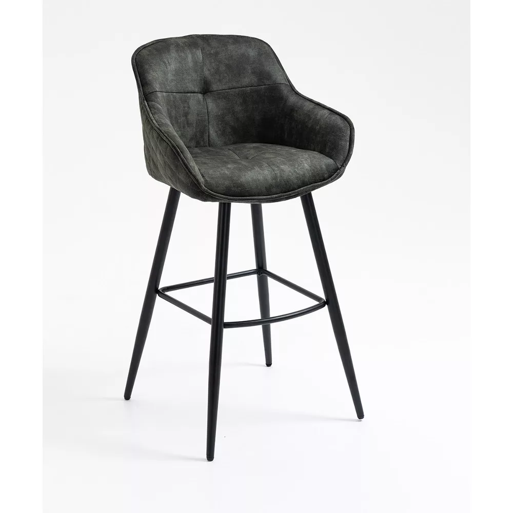 Modern bárszék trendi dizájnnal. Minőségi szövettel kárpitozva, négy színben kapható: antracit, zöld, curry és barna. A karfák és a 6 cm vastag, fémmel és habbal bélelt ülőfelület kényelmes ülést biztosít. Az 1,2 cm vastag fém lábazat fekete porfestett. Max. teherbírás 120 kg. Tekintse meg a termékcsalád többi termékét is.