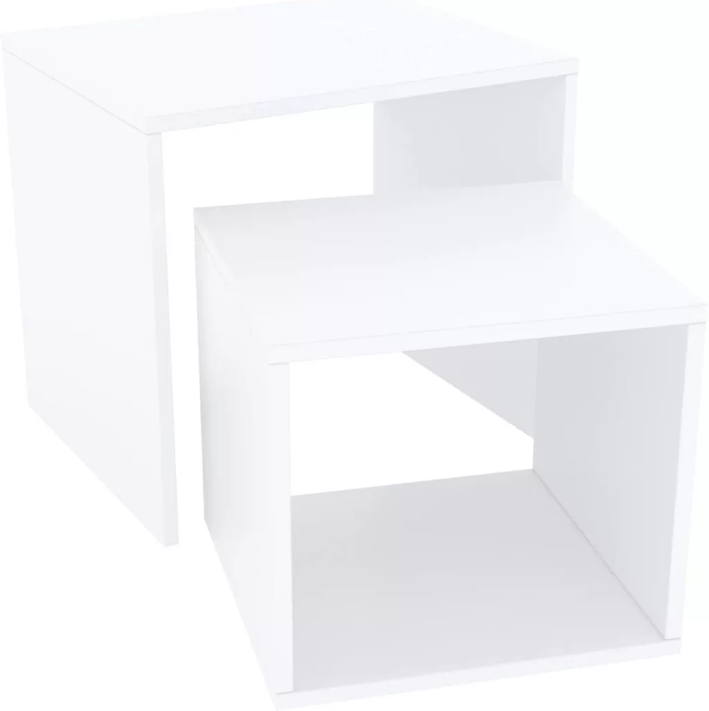Két különböző méretű, matt fehér színben kapható dohányzóasztalból álló szett, melyeket külön-külön is használhat, vagy egymás alá helyezve kevesebb helyet foglalhat. Praktikus kialakításuknak köszönhetően tökéletesek bejelentés nélküli vendégek fogadására vagy a tér különböző alkalmakhoz való átalakítására.