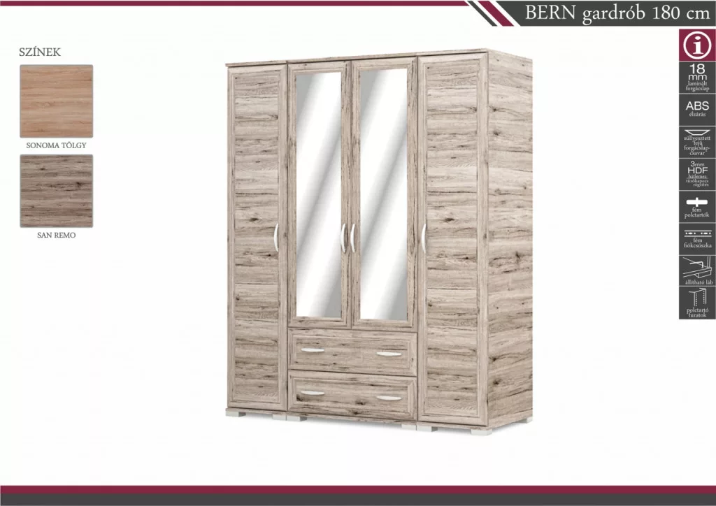 18 mm-es laminált forgácslapból készül, ABS élfóliával zárva, süllyesztett fejű forgácslapcsavarral összeszerelve.