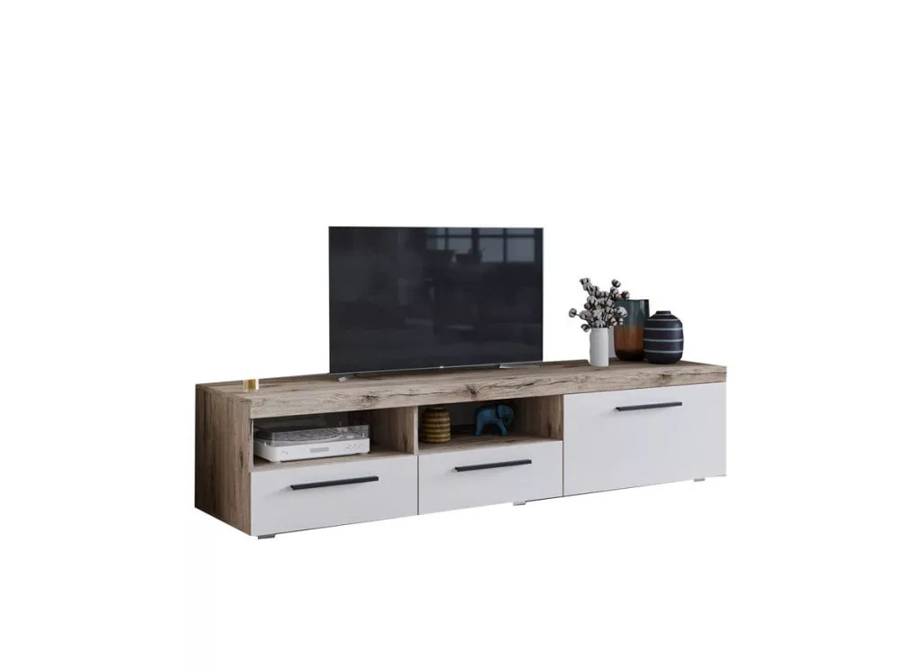 TV állvány - Nappali bútor BetaTV állvány - Nappali bútor Beta - Az a bútordarab, amely kiegészíti a nappali berendezését. 1 ajtóval, **két fiókkal** és **két nyitott rekesszel** felszerelt a nappaliban található dolgok tárolására és rendszerezésére. Könnyen összeszerelhető, a termékhez összeszerelési ábra és a szükséges szerszámok is tartoznak a csomagokban. További információk:
