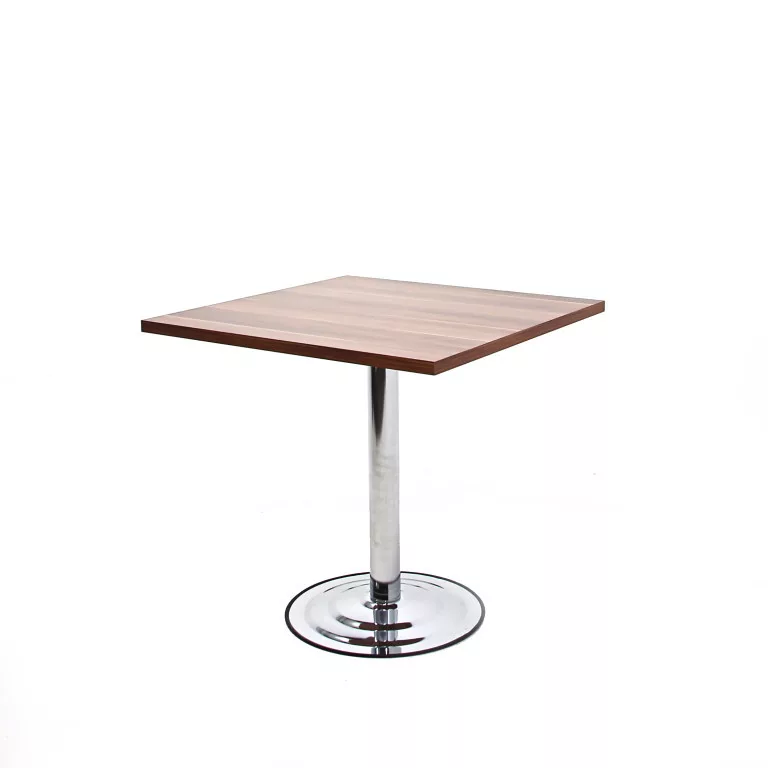 z asztallap laminált faforgácslapból készült, fix kivitelben, ABS élzárással. Krómozott fém lábazattal. Méret: 80 x 80 x 76 cm (Szélesség x Hosszúság x Magasság)