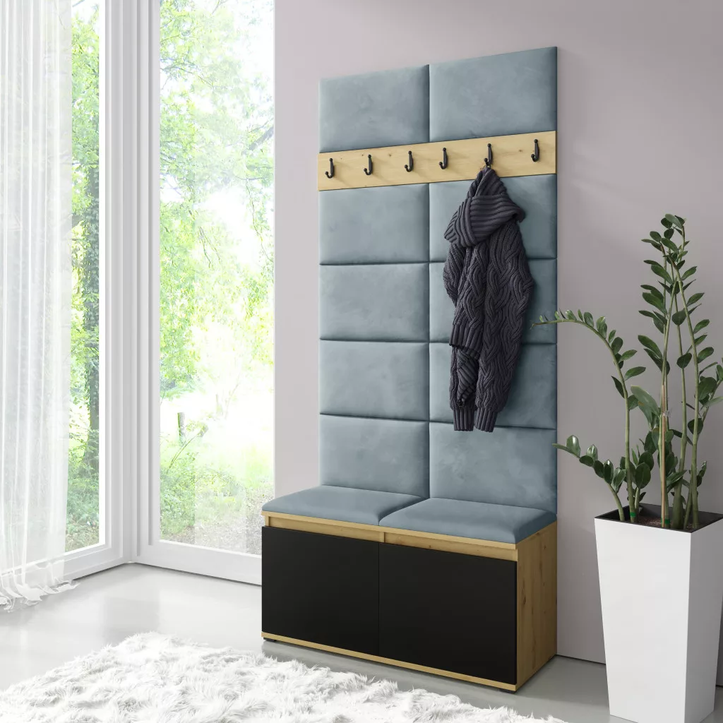 Blum 1 kárpitozott előszobafal, artisan/fekete - aqua 22 - egyedi