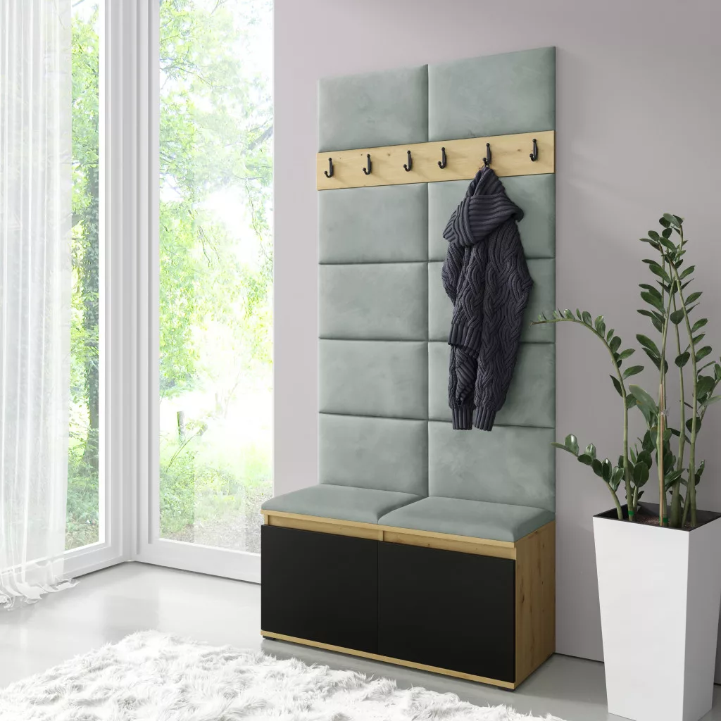 Blum 1 kárpitozott előszobafal, artisan/fekete - menta 21 - egyedi