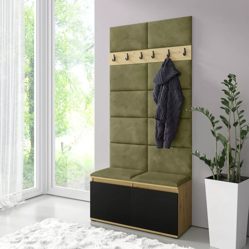 Blum 1 kárpitozott előszobafal, artisan/fekete - oliva zöld 27 - egyedi