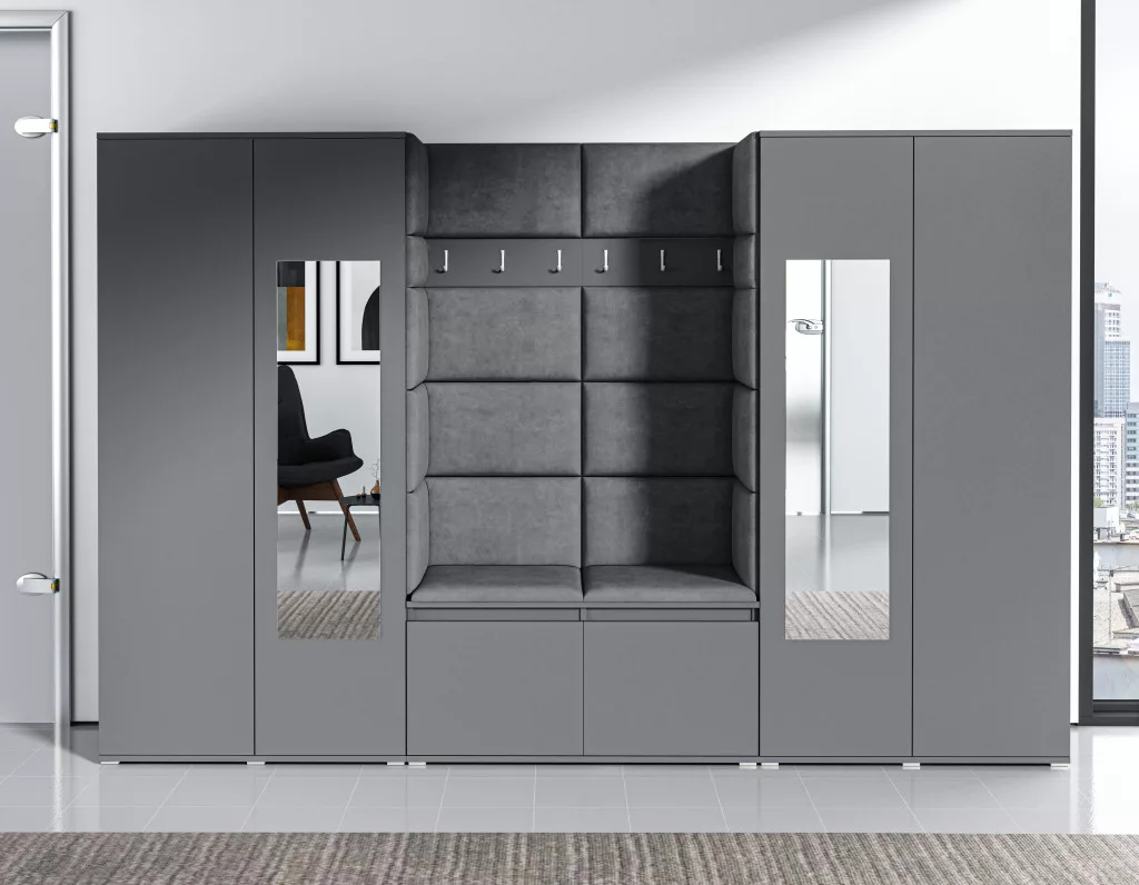 Blum 10 kárpitozott előszobafal tükörrel, grafit - szürke 15