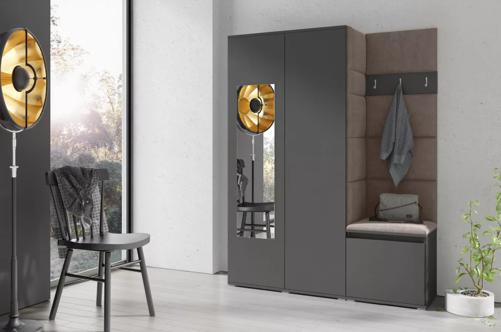 Blum 11 kárpitozott előszobafal tükörrel, grafit - barna 05