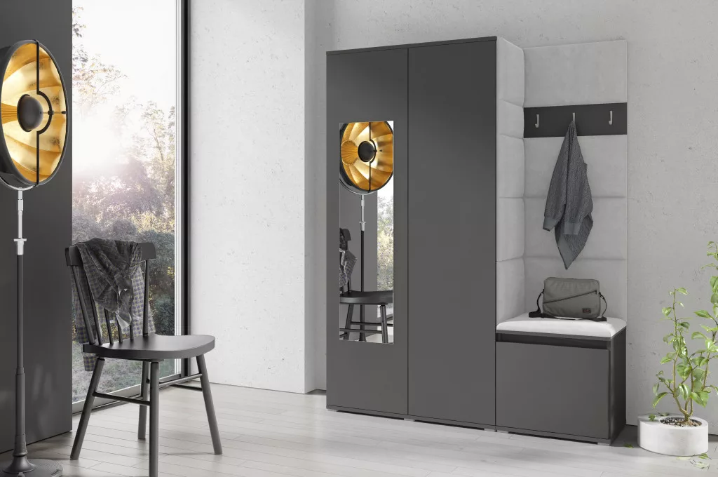 Blum 11 kárpitozott előszobafal tükörrel, grafit - krém 01