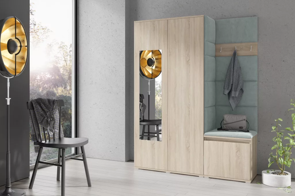 Blum 11 kárpitozott előszobafal tükörrel, sonoma - menta 21 - egyedi