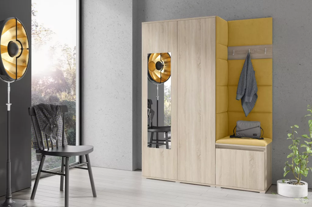 Blum 11 kárpitozott előszobafal tükörrel, sonoma - sárga 18 - egyedi