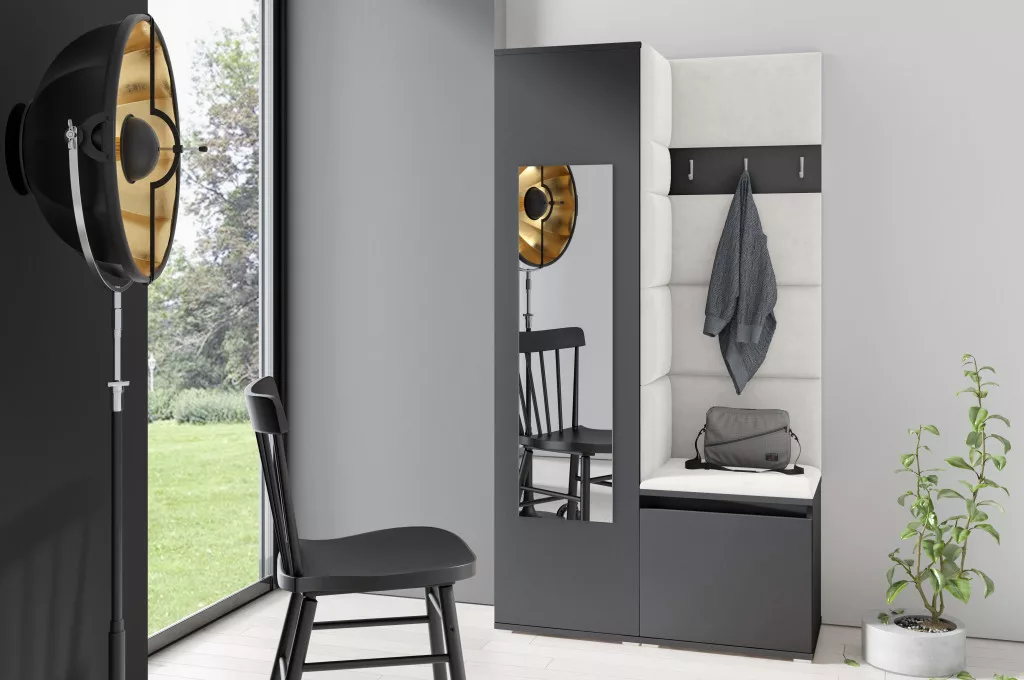 Blum 13 kárpitozott előszobafal tükörrel, grafit - krém 01