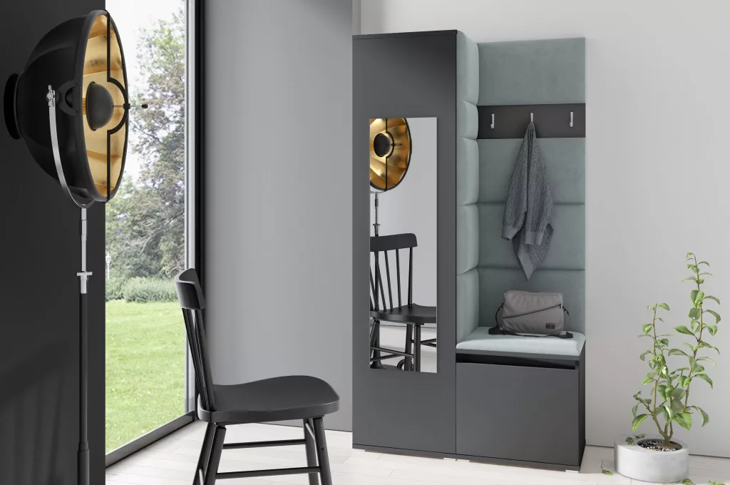 Blum 13 kárpitozott előszobafal tükörrel, grafit - szürke 14