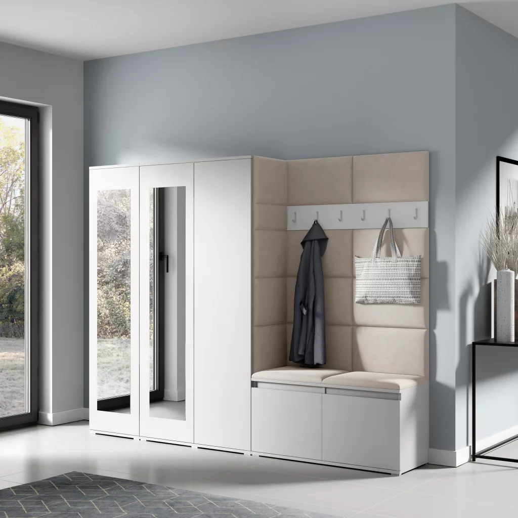 Blum 15 kárpitozott előszobafal tükörrel, fehér - bézs 02