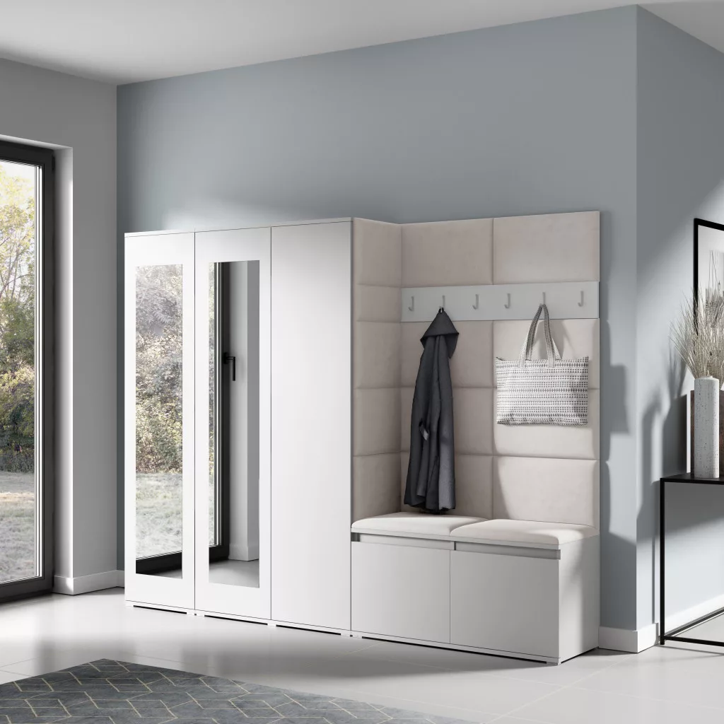 Blum 15 kárpitozott előszobafal tükörrel, fehér - krém 01