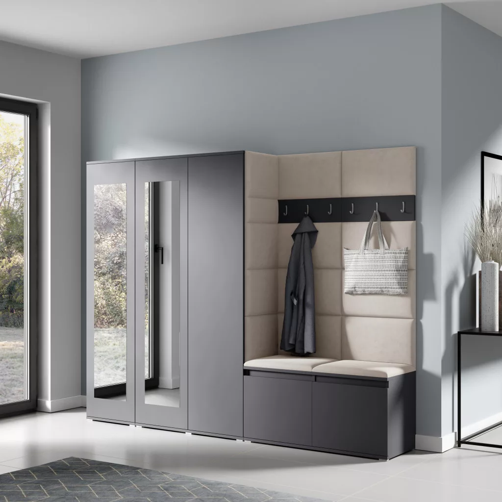 Blum 15 kárpitozott előszobafal tükörrel, grafit - bézs 02