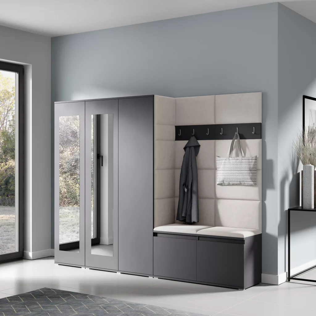 Blum 15 kárpitozott előszobafal tükörrel, grafit - krém 01