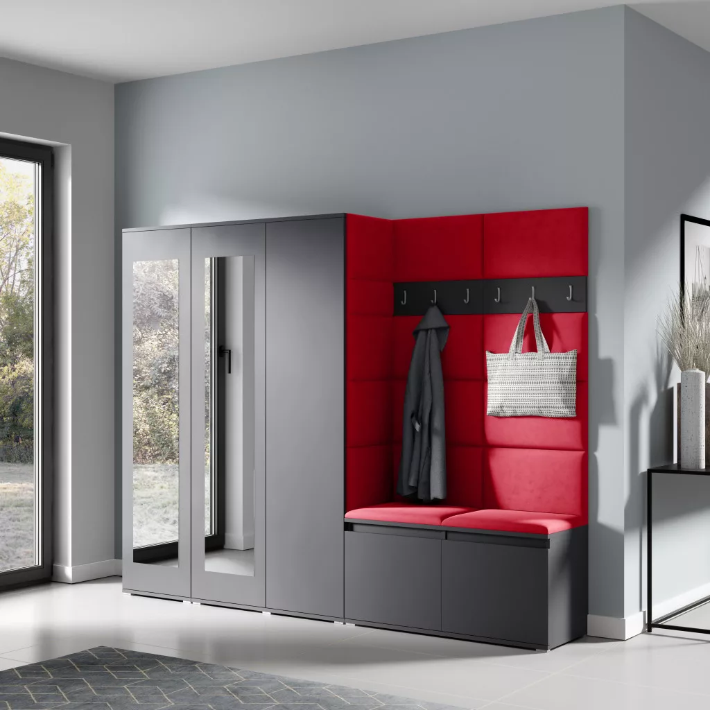 Blum 15 kárpitozott előszobafal tükörrel, grafit - rubinvörös 24 - egyedi