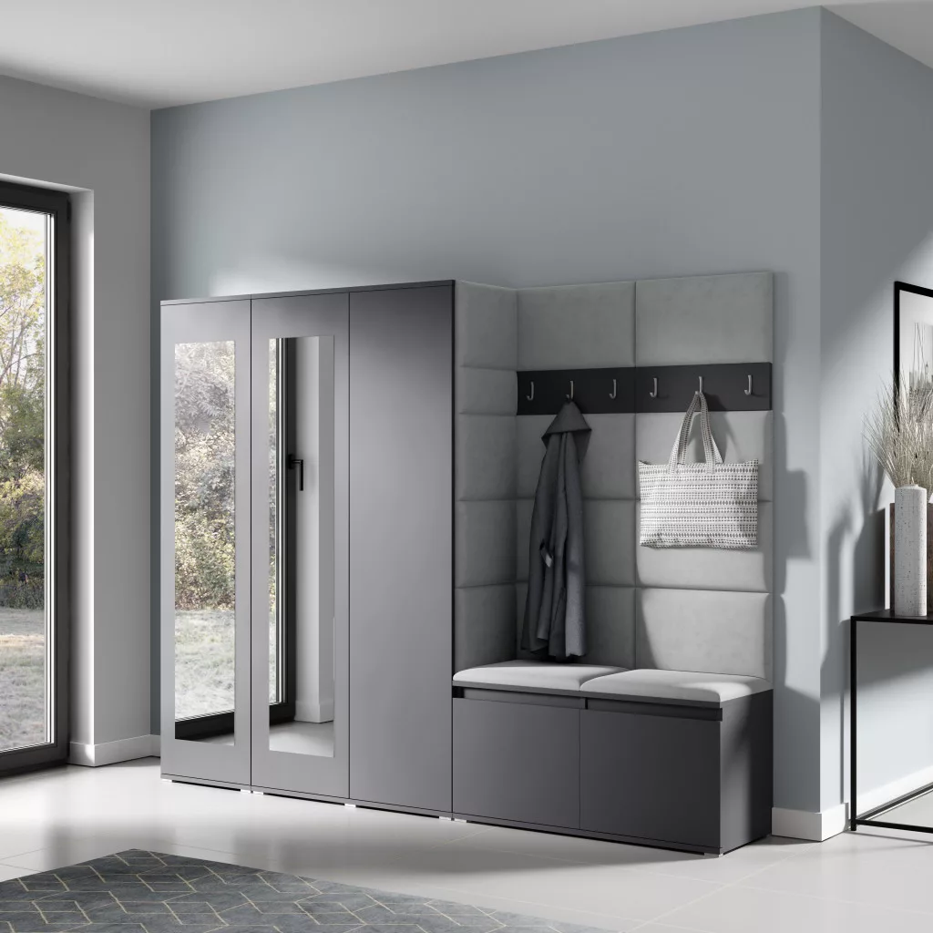 Blum 15 kárpitozott előszobafal tükörrel, grafit - szürke 14