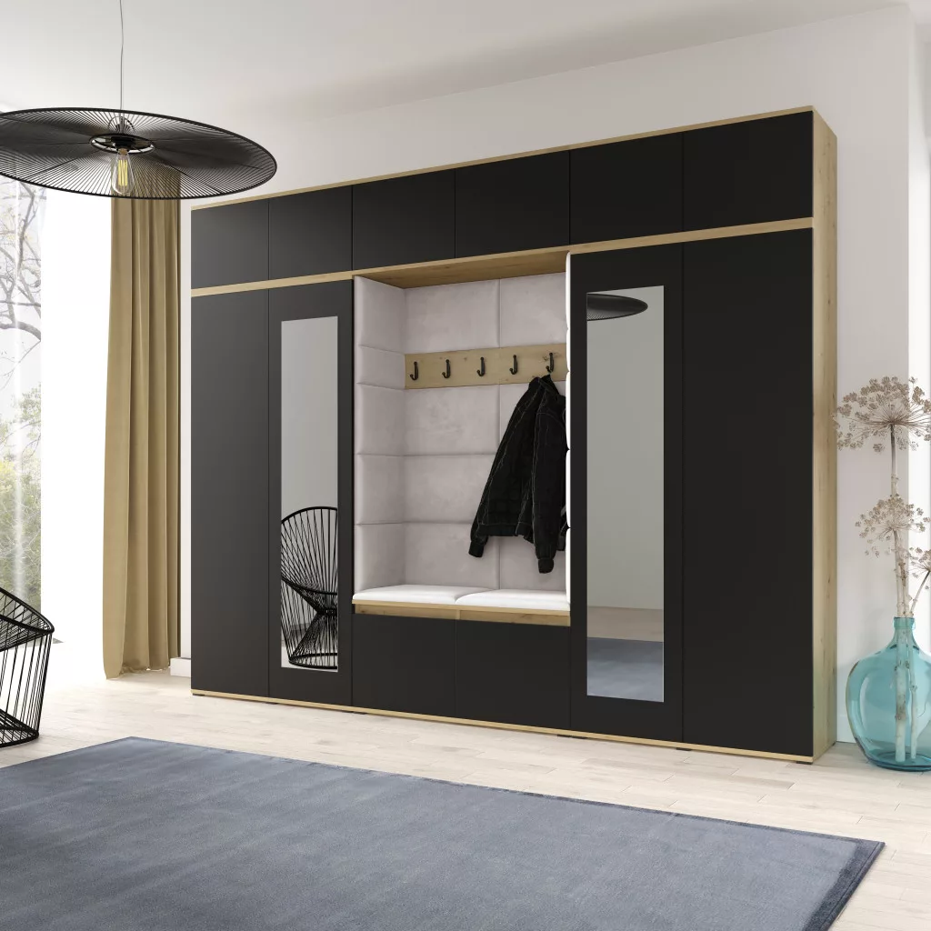Blum 17 kárpitozott előszobafal tükörrel, artisan/fekete - krém 01