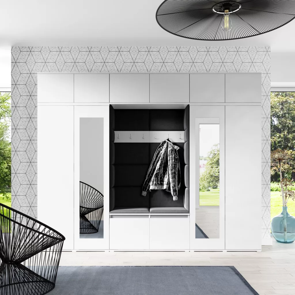Blum 17 kárpitozott előszobafal tükörrel, fehér - fekete 16