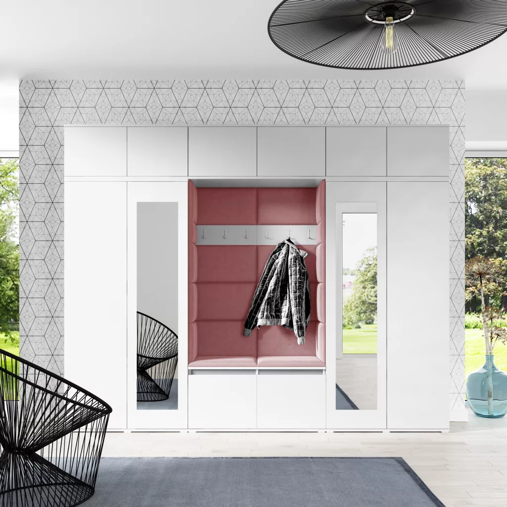 Blum 17 kárpitozott előszobafal tükörrel, fehér - rózsaszín 23 - egyedi