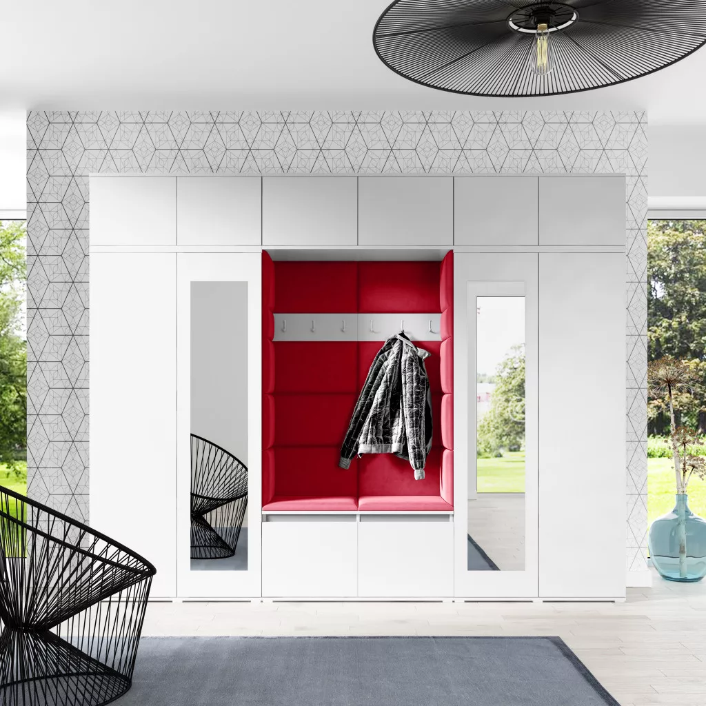 Blum 17 kárpitozott előszobafal tükörrel, fehér - rubinvörös 24 - egyedi