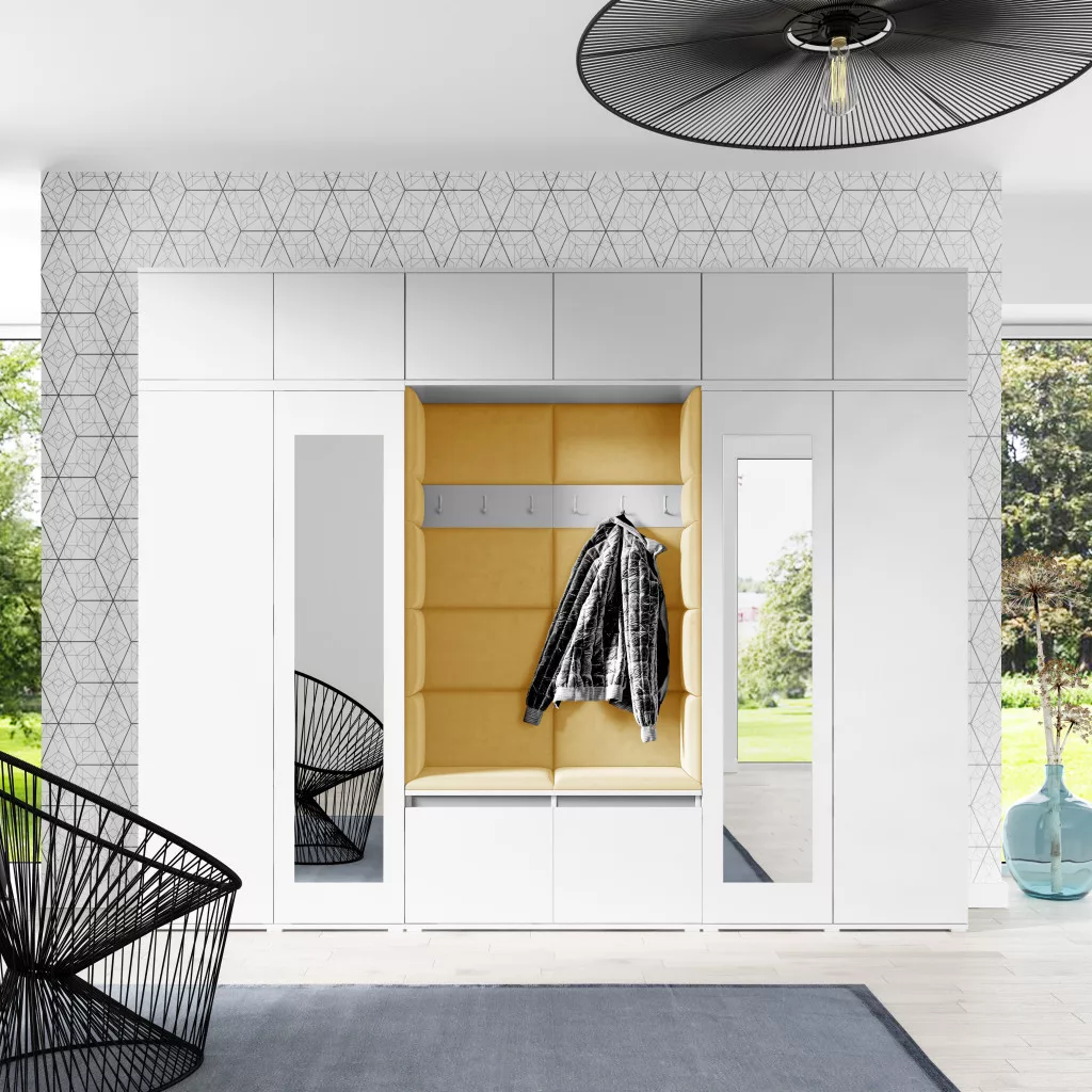 Blum 17 kárpitozott előszobafal tükörrel, fehér - sárga 18 - egyedi