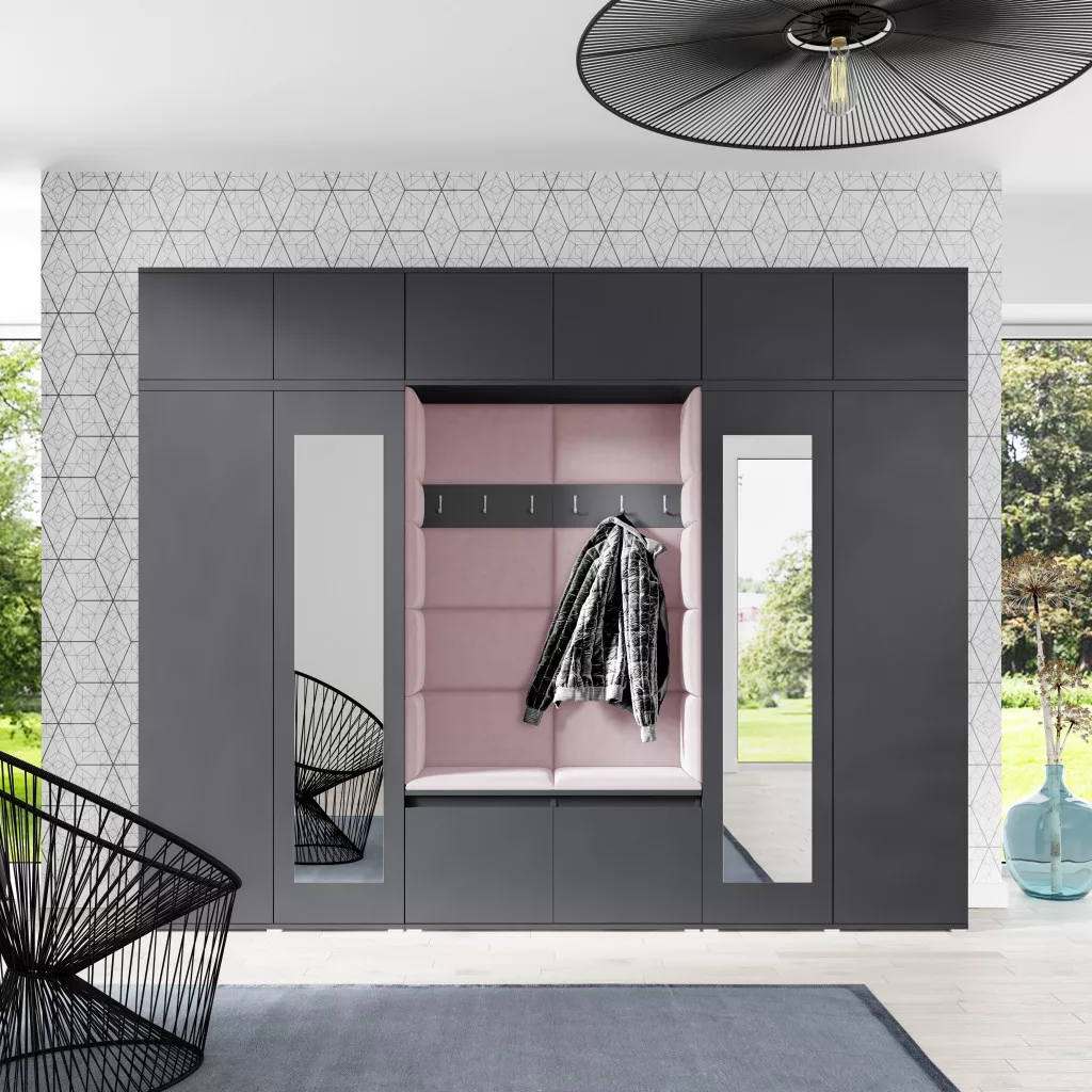 Blum 17 kárpitozott előszobafal tükörrel, grafit - aqua 22 - egyedi