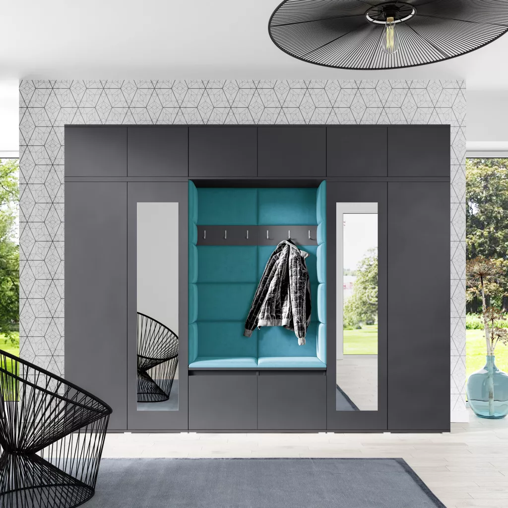 Blum 17 kárpitozott előszobafal tükörrel, grafit - azúr 13 - egyedi