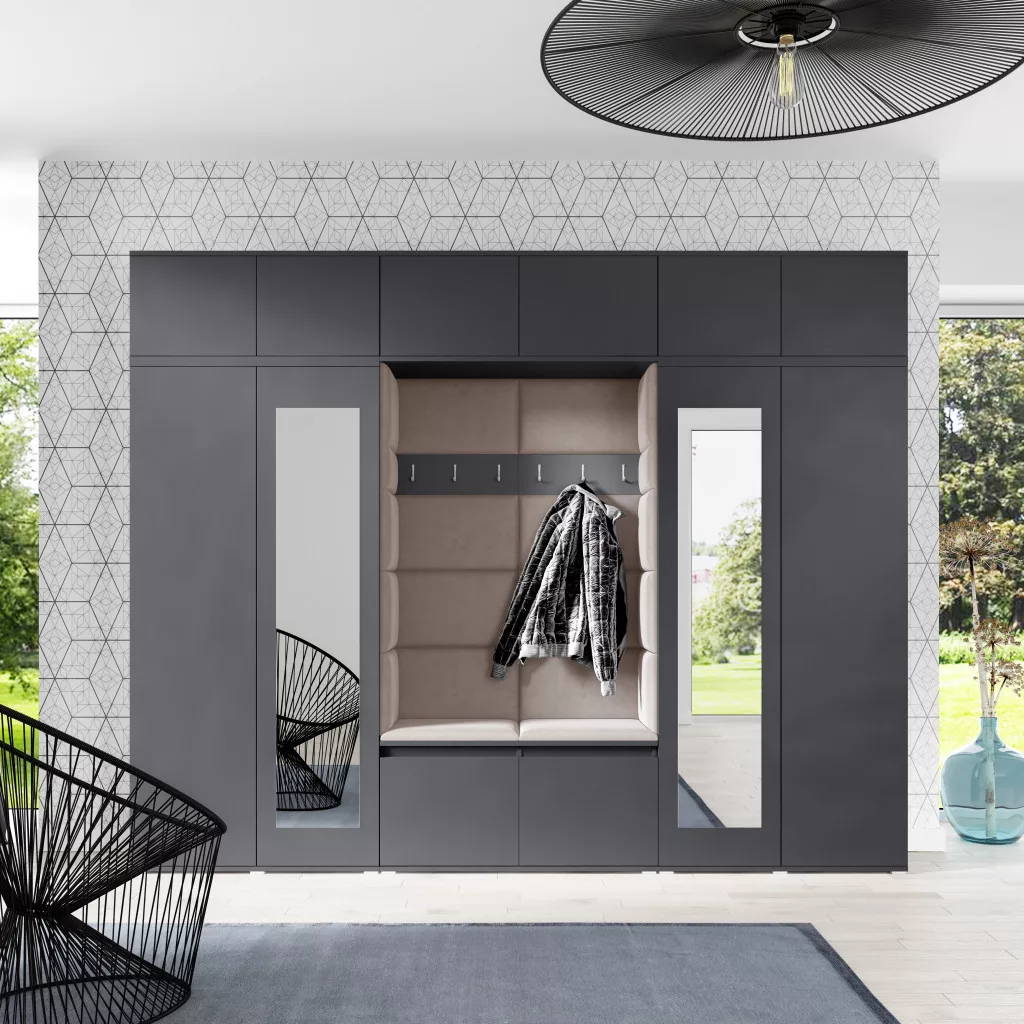Blum 17 kárpitozott előszobafal tükörrel, grafit - barna 05