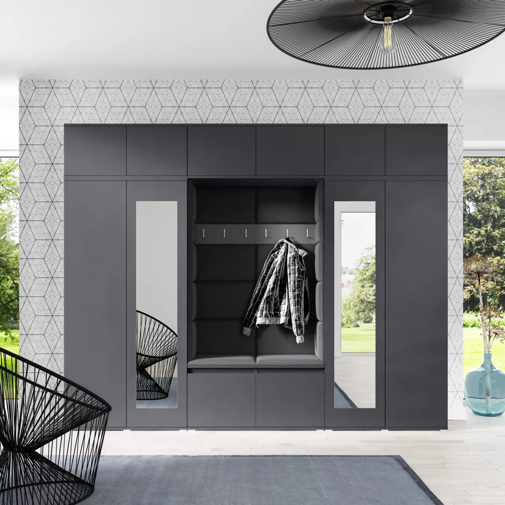 Blum 17 kárpitozott előszobafal tükörrel, grafit - fekete 16