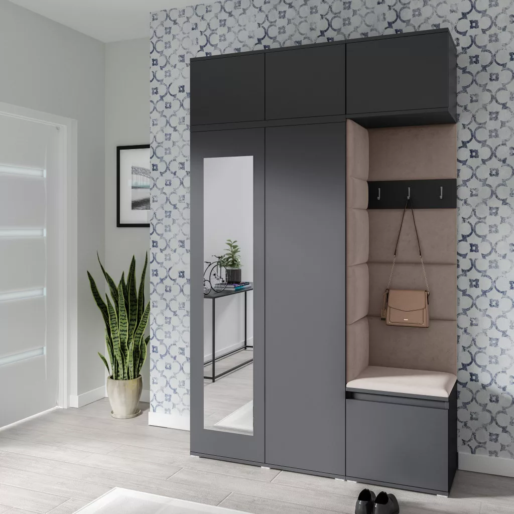 Blum 18 kárpitozott előszobafal tükörrel, grafit - barna 05