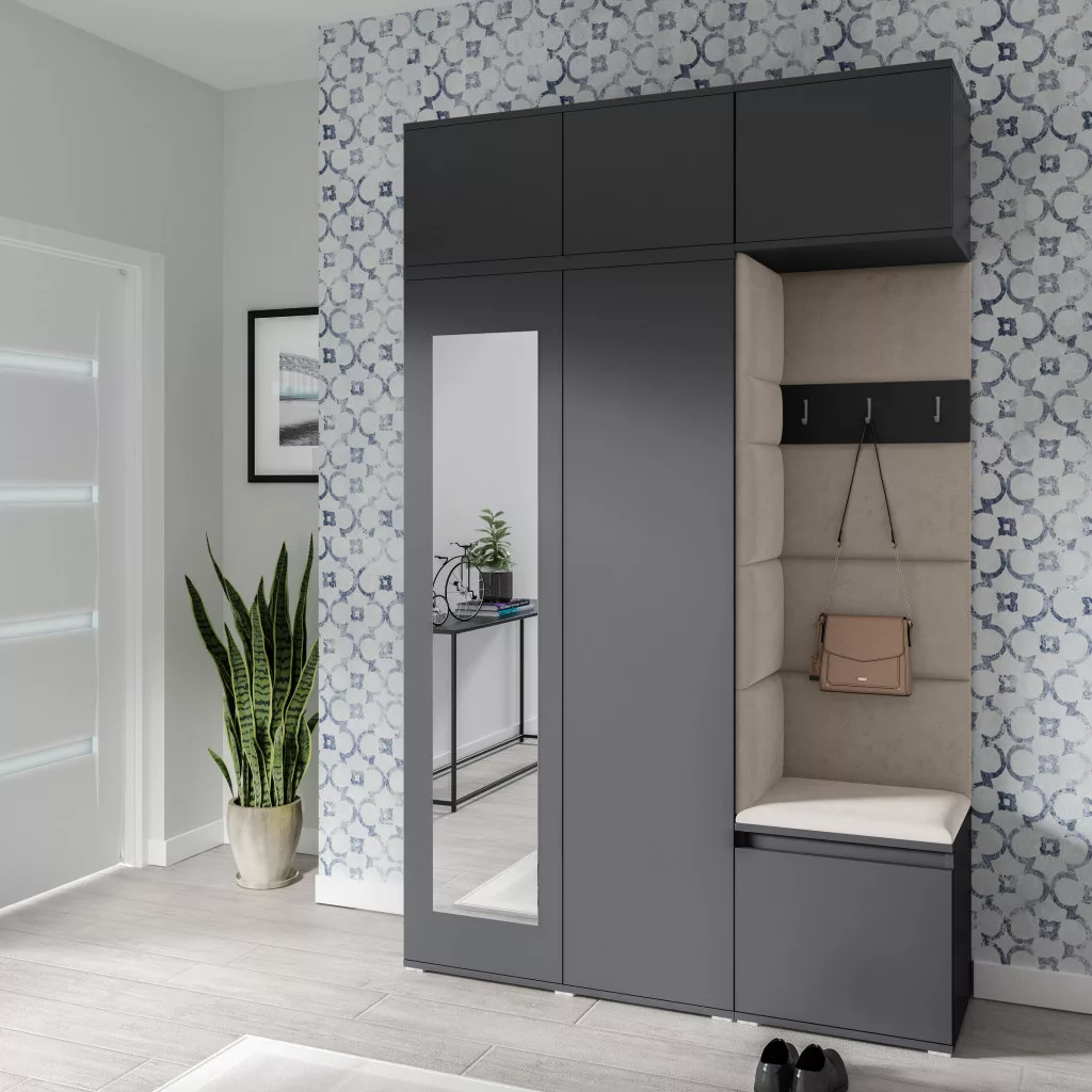 Blum 18 kárpitozott előszobafal tükörrel, grafit - bézs 02