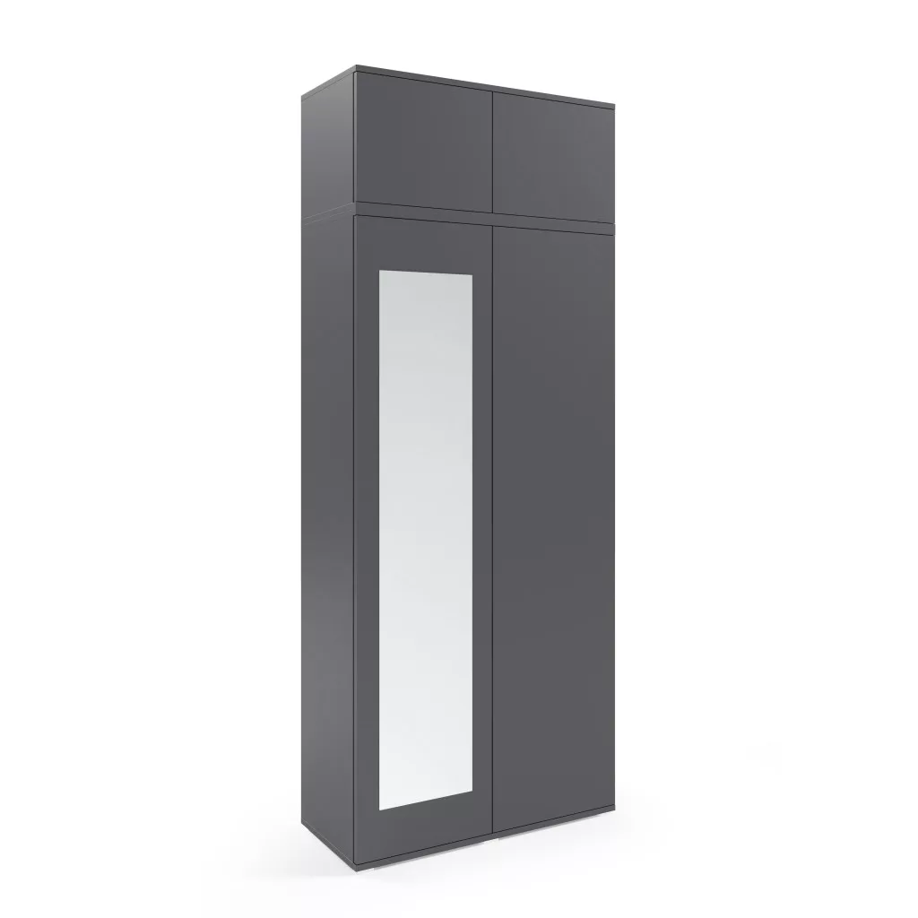 1 db gardróbszekrény - 2 db polccal, 2 db akasztóval - ajtói push-to-open rendszerrel, benyomásra nyílnak