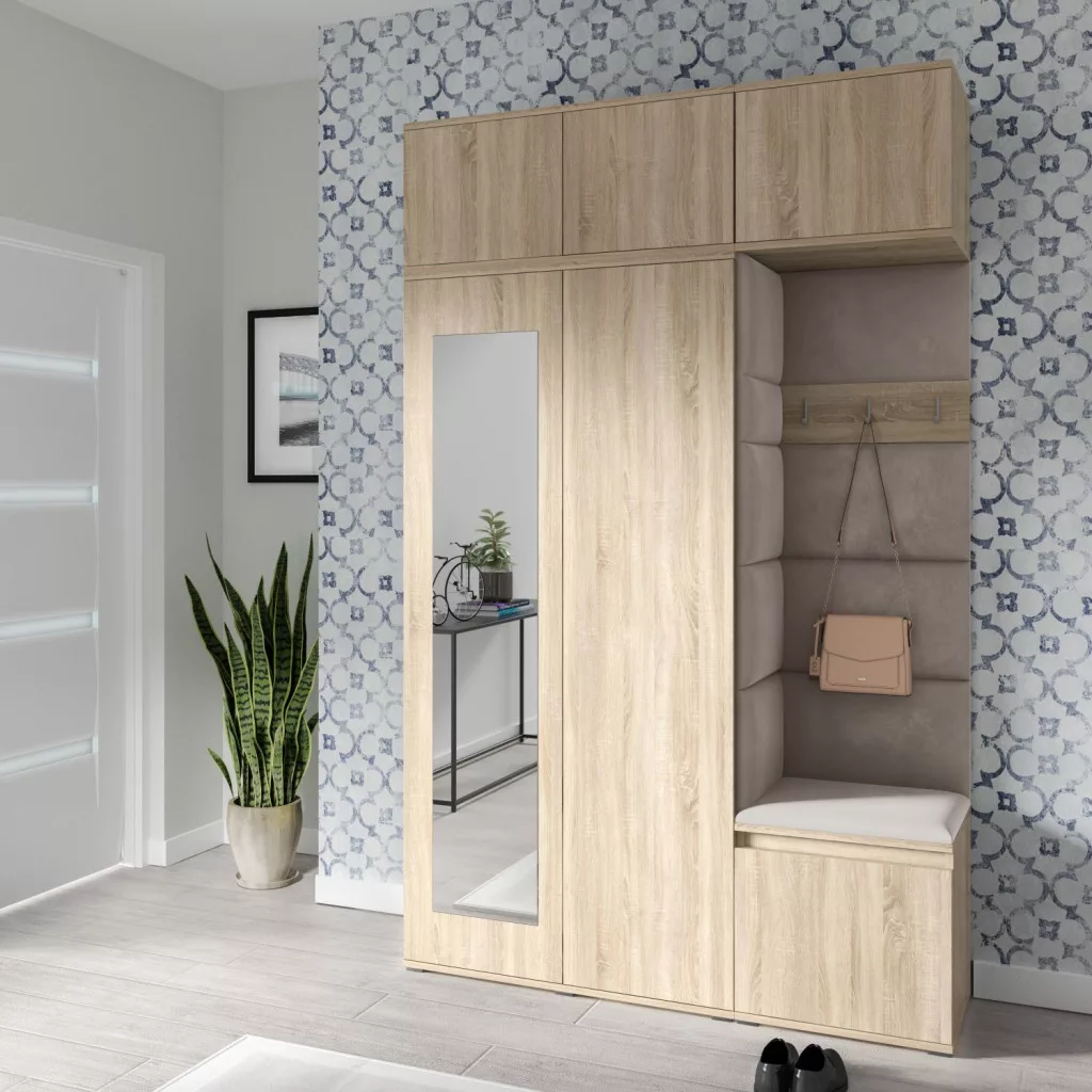Blum 18 kárpitozott előszobafal tükörrel, sonoma - barna 05