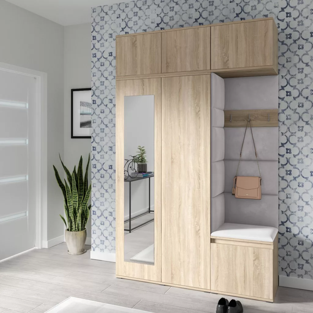 Blum 18 kárpitozott előszobafal tükörrel, sonoma - ezüst 32 - egyedi