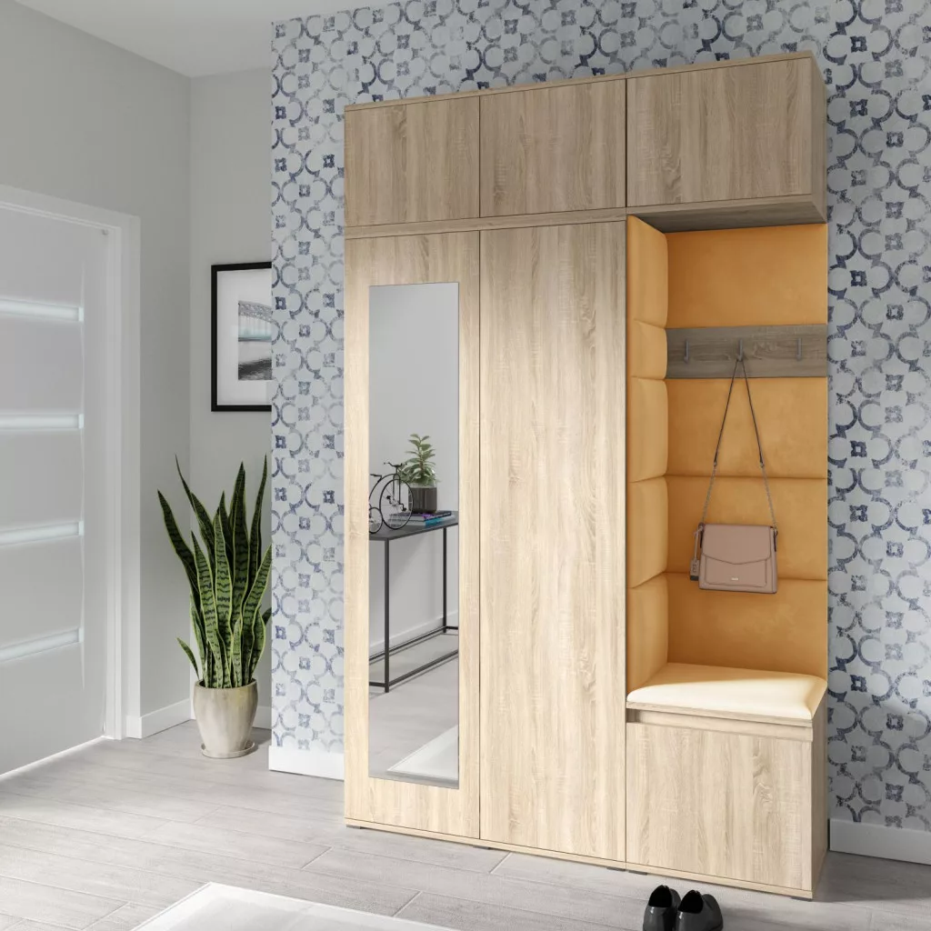 Blum 18 kárpitozott előszobafal tükörrel, sonoma - sárga 26 - egyedi