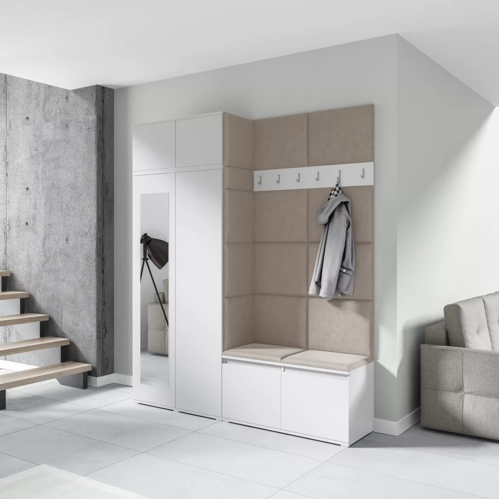 A kárpitozott paneleket közvetlenül a falra, a szekrényre és a cipőtartóra kell rögzíteni ragasztó segítségével. A ragasztót a csomag nem tartalmazza.