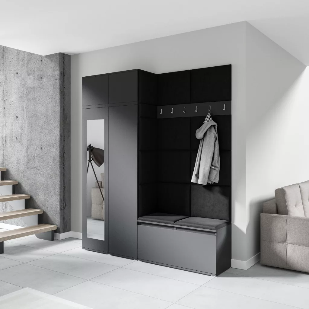 Blum 19 kárpitozott előszobafal tükörrel, grafit - fekete 16