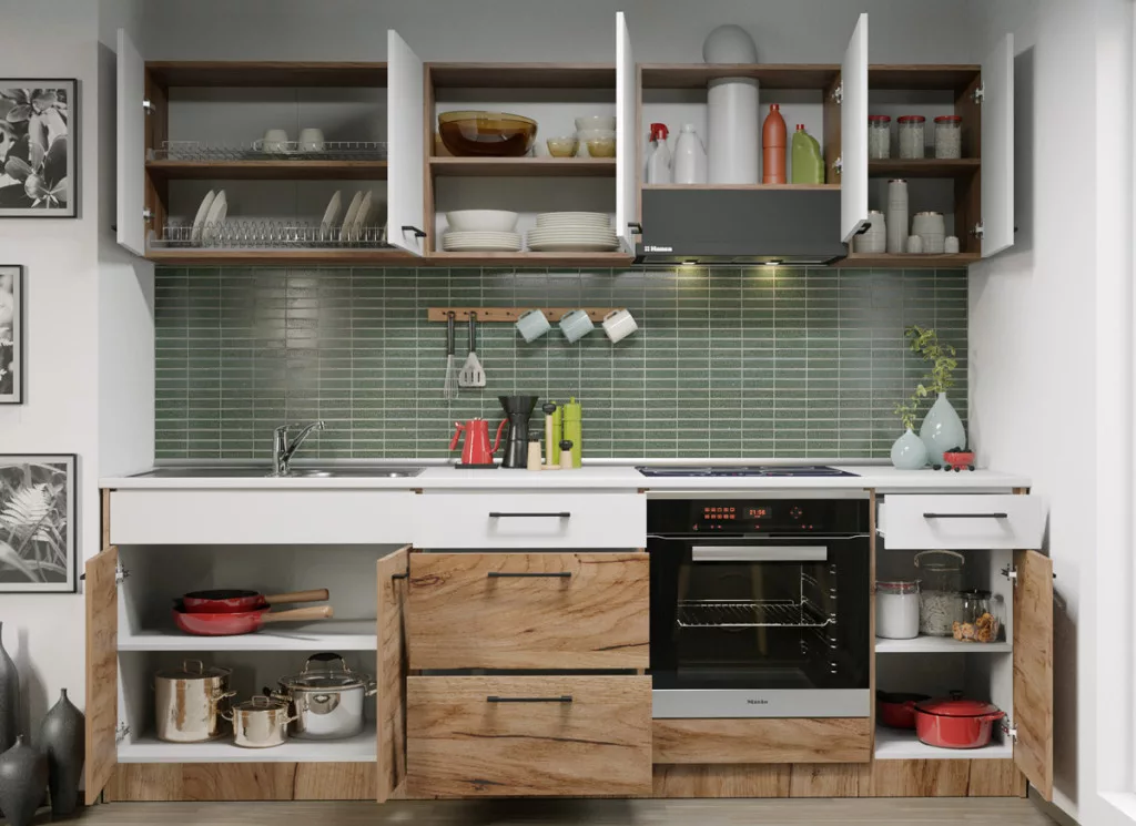 - A háztartási gépek és a mosogatótálca nem tartozéka a konyháknak.