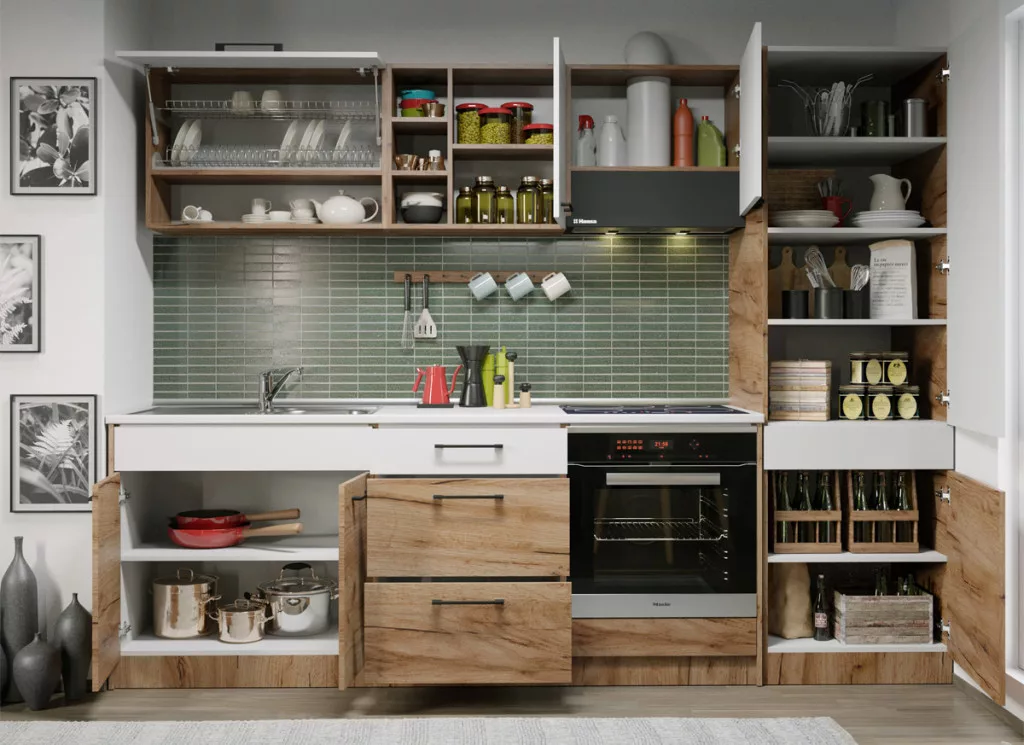 - A háztartási gépek és a mosogatótálca nem tartozéka a konyháknak.