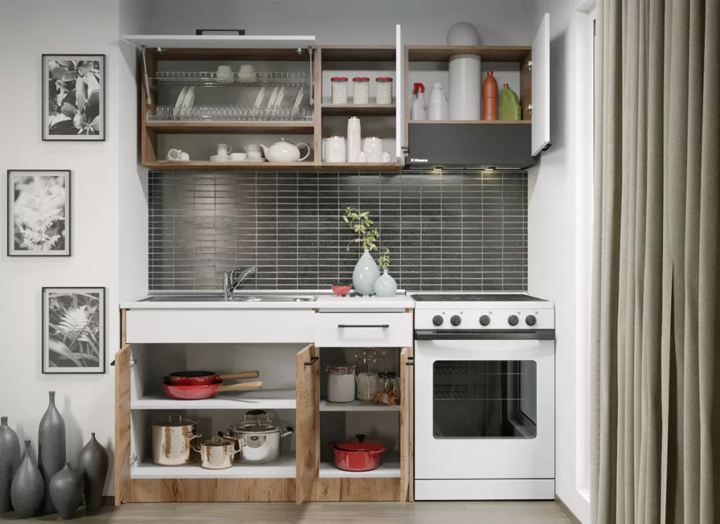 - A háztartási gépek és a mosogatótálca nem tartozéka a konyháknak.