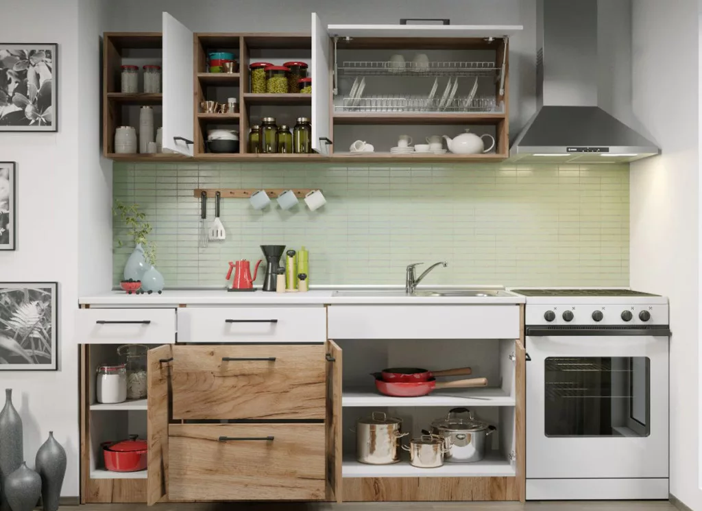 - A háztartási gépek és a mosogatótálca nem tartozéka a konyháknak.